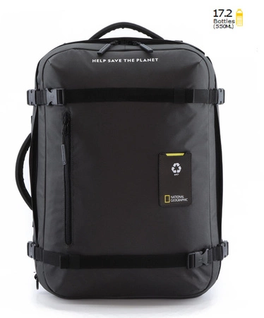 Świetnie trafiłeś! Torba plecak National Geographic model OCEAN 20907 to świetne rozwiązanie dla wszystkich osób, które cenią sobie funkcjonalność i wytrzymałość produktów. Torba posiada dwie komory, w których znajduje się kilka przegródek i kieszonki, w tym bezpieczna kieszeń z RFID. Komory są zapinane na suwak. Długi i regulowany pasek umożliwia dopasowanie torby do potrzeb każdej osoby. Produkt wykonany jest z wysokiej jakości materiału rPet, czyli plastiku z ponownej przeróbki plastikowych butelek. Na ten model zużywa się 17,2 butelki 550 ml.