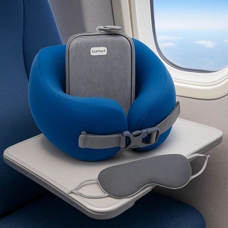 Poduszka podróżna EASY NAP duża niebieska + opaska na oczy